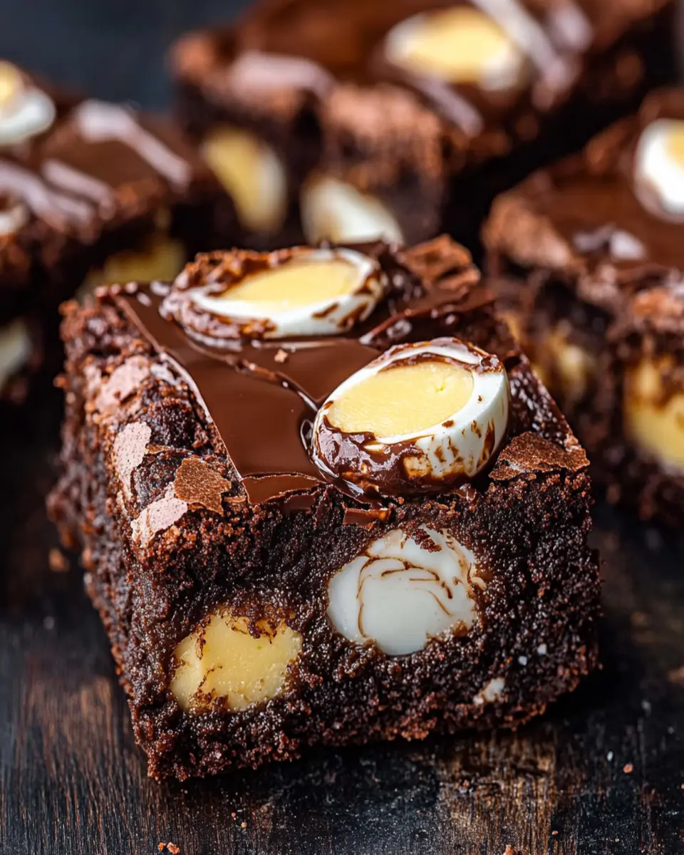For those who love a bit of crunch, consider adding chopped nuts such as walnuts or pecans to the brownie batter. This not only adds texture but also enhances the flavor profile with a nutty richness that complements the chocolate and creme eggs beautifully.