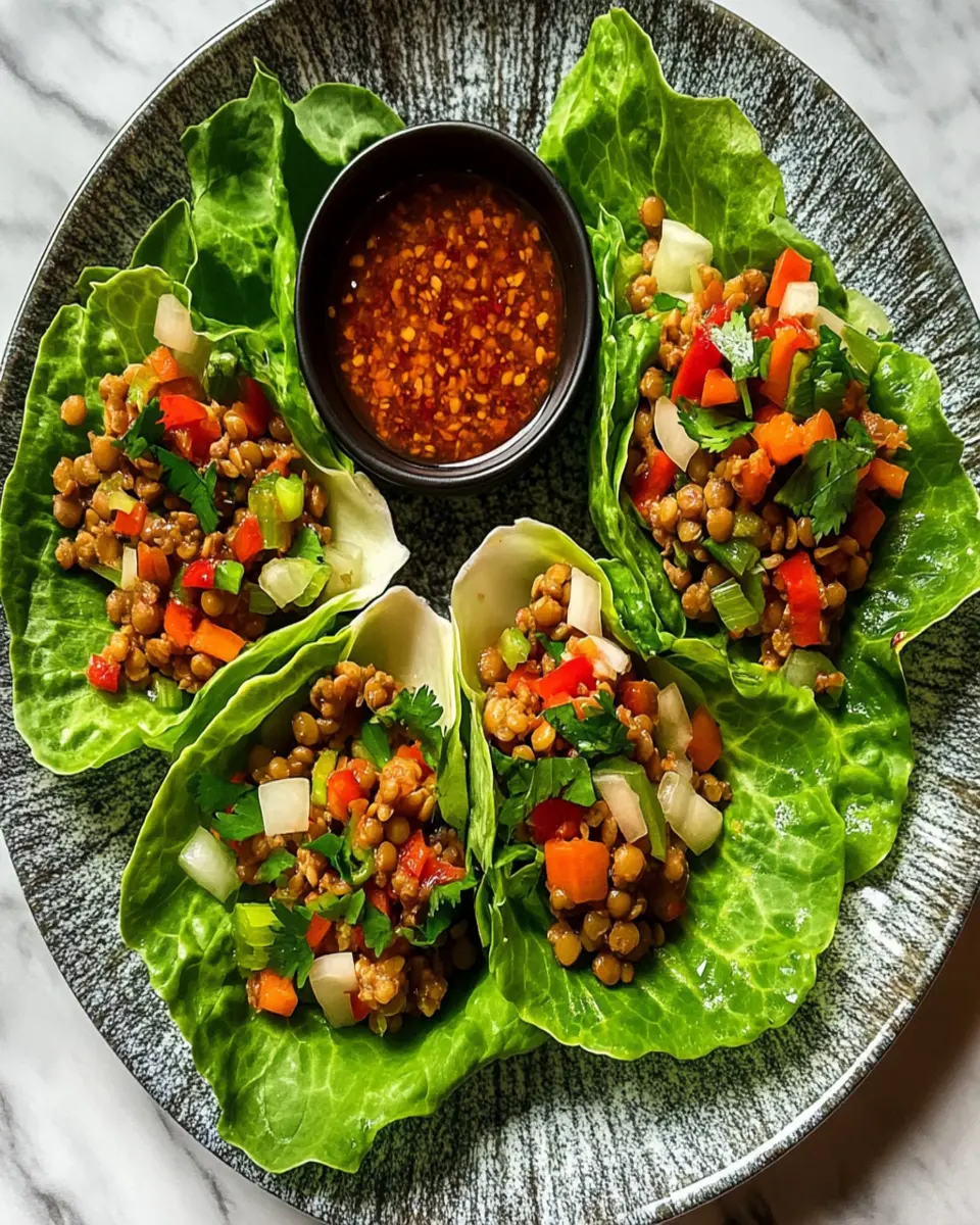 Asian Lentil Lettuce Wraps are a healthy and delicious dish made with protein-rich lentils and fresh vegetables, all served in crispy lettuce leaves. They make for a great meal or snack that is both satisfying and nutritious.