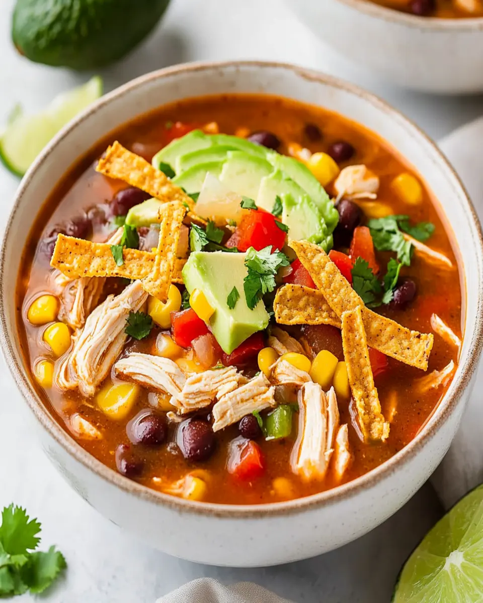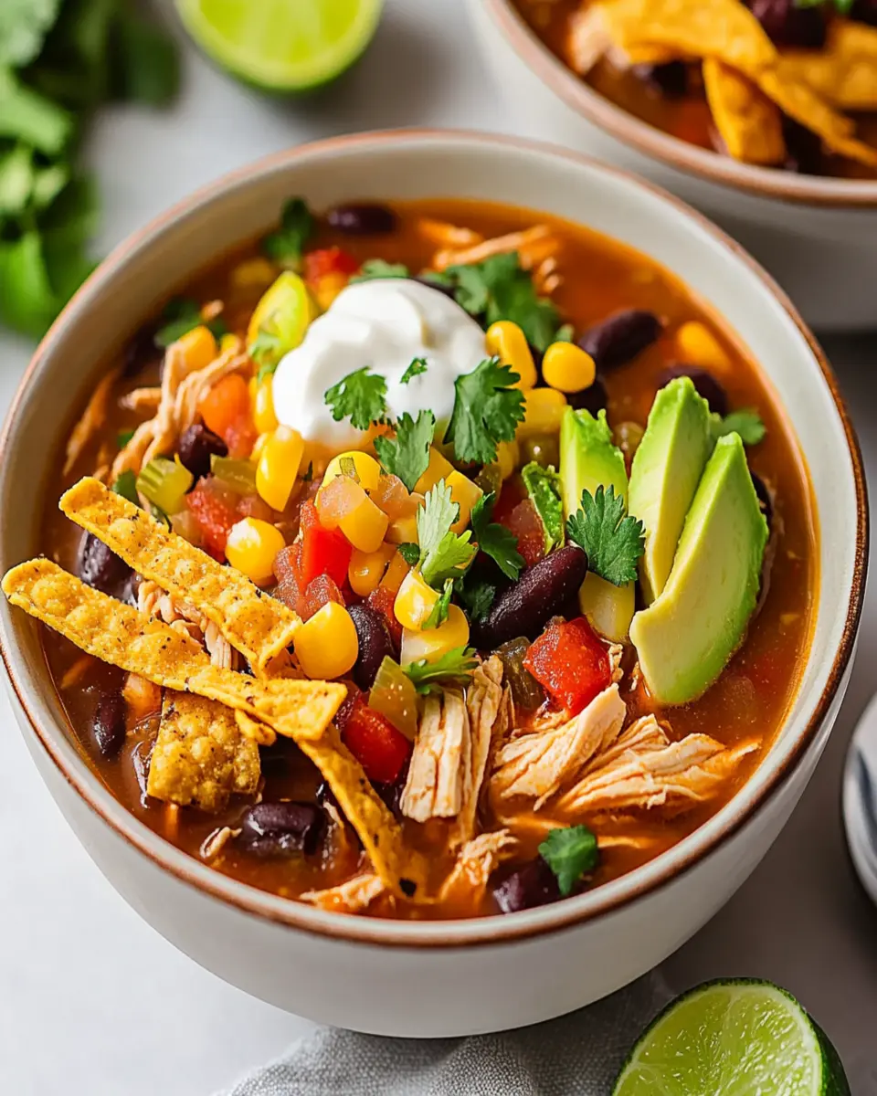 Not only is this soup bursting with flavor, but it also offers a comforting warmth that’s perfect for chilly evenings. Each spoonful is a delightful mix of textures, from the crunchy tortilla chips topping the soup to the tender chicken and fresh cilantro. So, gather your ingredients and let’s dive into this easy recipe that promises to become a staple in your kitchen!