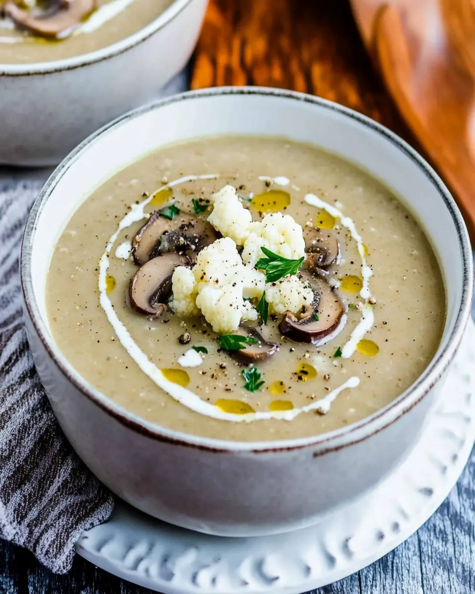 In conclusion, this Cauliflower Mushroom Soup is not only a delightful and creamy dish but also a nourishing option for any meal. Perfect for busy young professionals, it can be prepared in just 45 minutes, making it an ideal choice for a quick dinner or lunch. Whether enjoyed alone or paired with crusty bread, this soup is sure to warm your heart and satisfy your taste buds. Don’t forget to cook, save, or share this recipe with friends who will appreciate a comforting bowl of goodness!