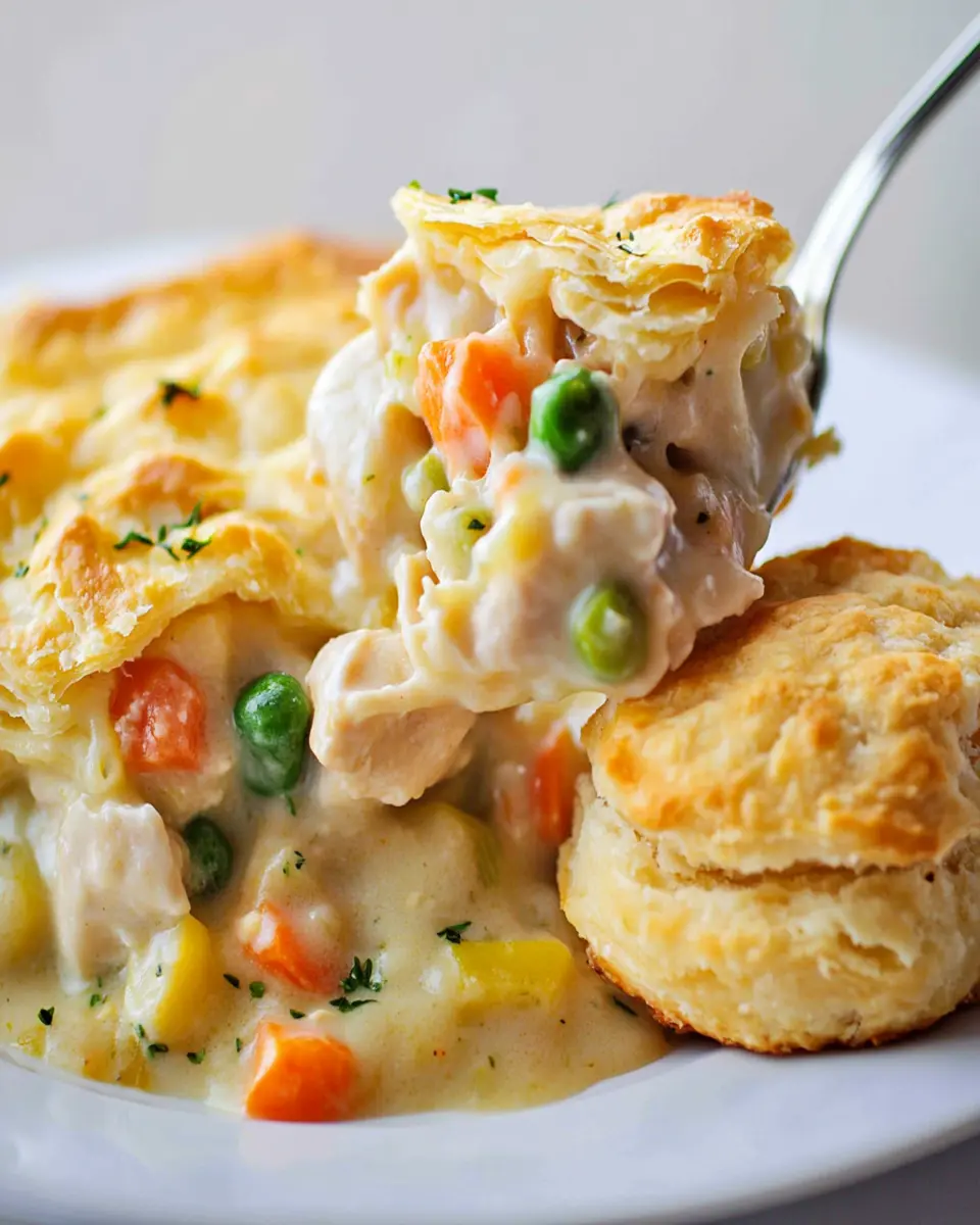 Perfect for busy weeknights or cozy gatherings, this meal is quick to prepare and satisfying to eat. It’s a versatile dish that can be customized to suit your tastes, whether you prefer extra vegetables or a different protein. With its creamy filling and golden biscuit topping, it’s sure to become a family favorite.