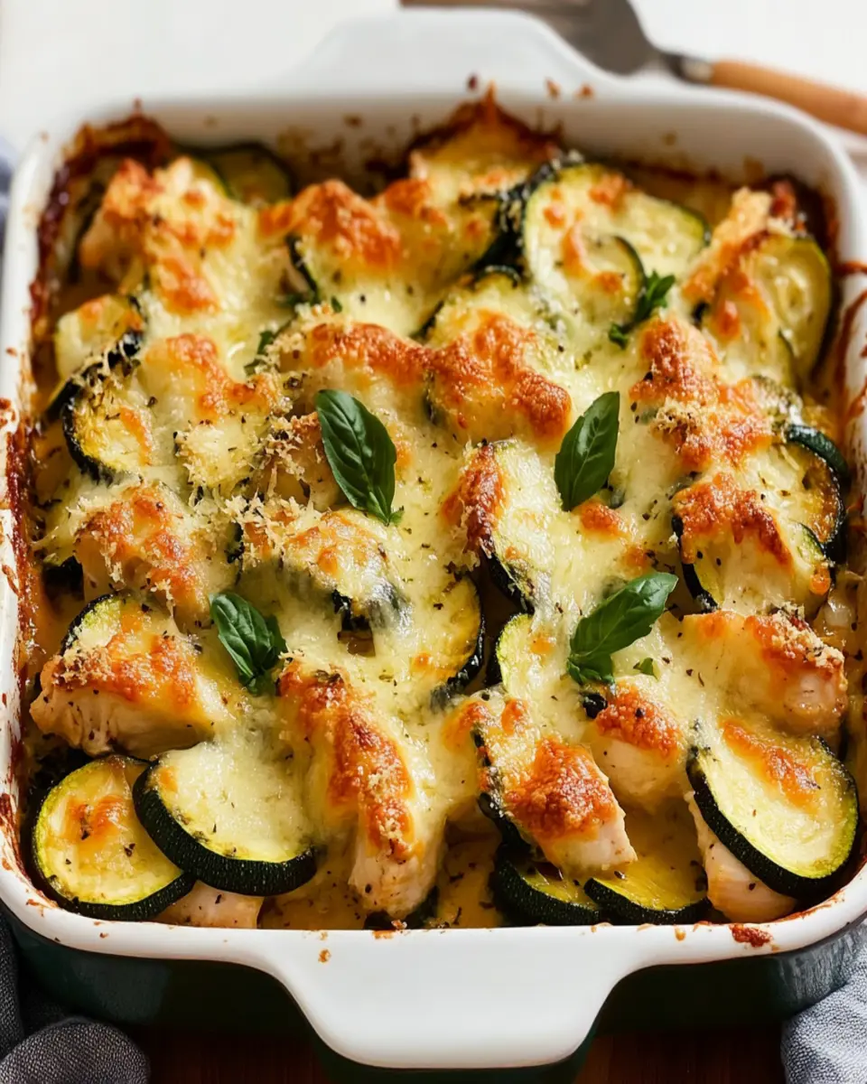Packed with protein from the chicken and rich in vitamins from the zucchini, this dish is as nutritious as it is delicious. You can feel good about serving it to your loved ones, knowing it meets dietary needs while still being satisfying. The combination of cheeses adds richness, while the vegetables keep it light and fresh.