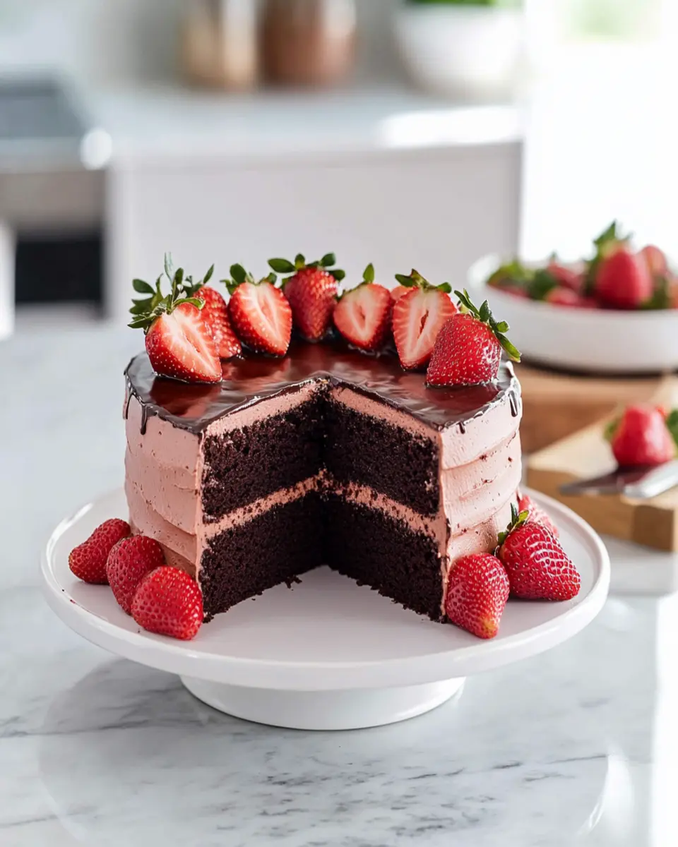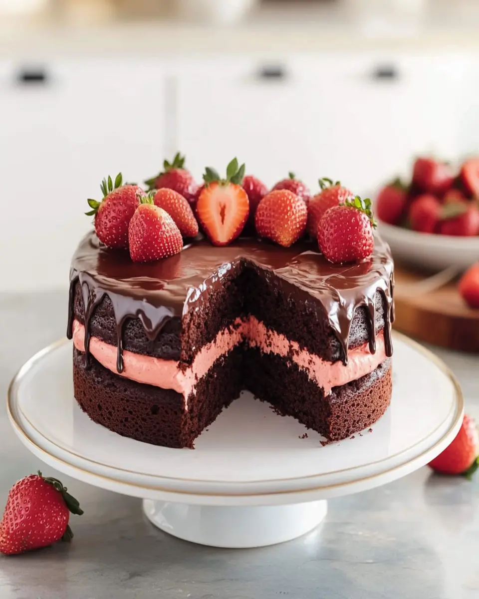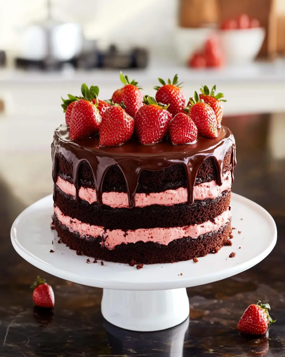 This delicious Chocolate Strawberry Cake combines rich chocolate flavor with fresh strawberries for a decadent dessert.