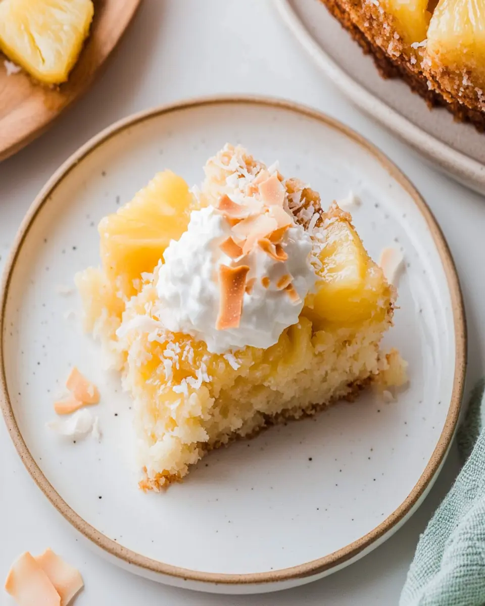 The combination of sweet pineapple and rich coconut creates a delightful flavor profile that appeals to both kids and adults alike. Whether you’re hosting a dinner party or just looking for a sweet treat after a long day, this cake is sure to be a hit. Plus, you can serve it warm, at room temperature, or topped with whipped cream or ice cream for an extra indulgence.