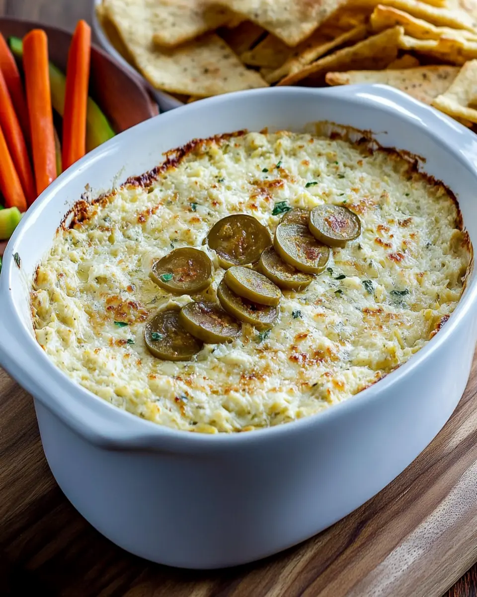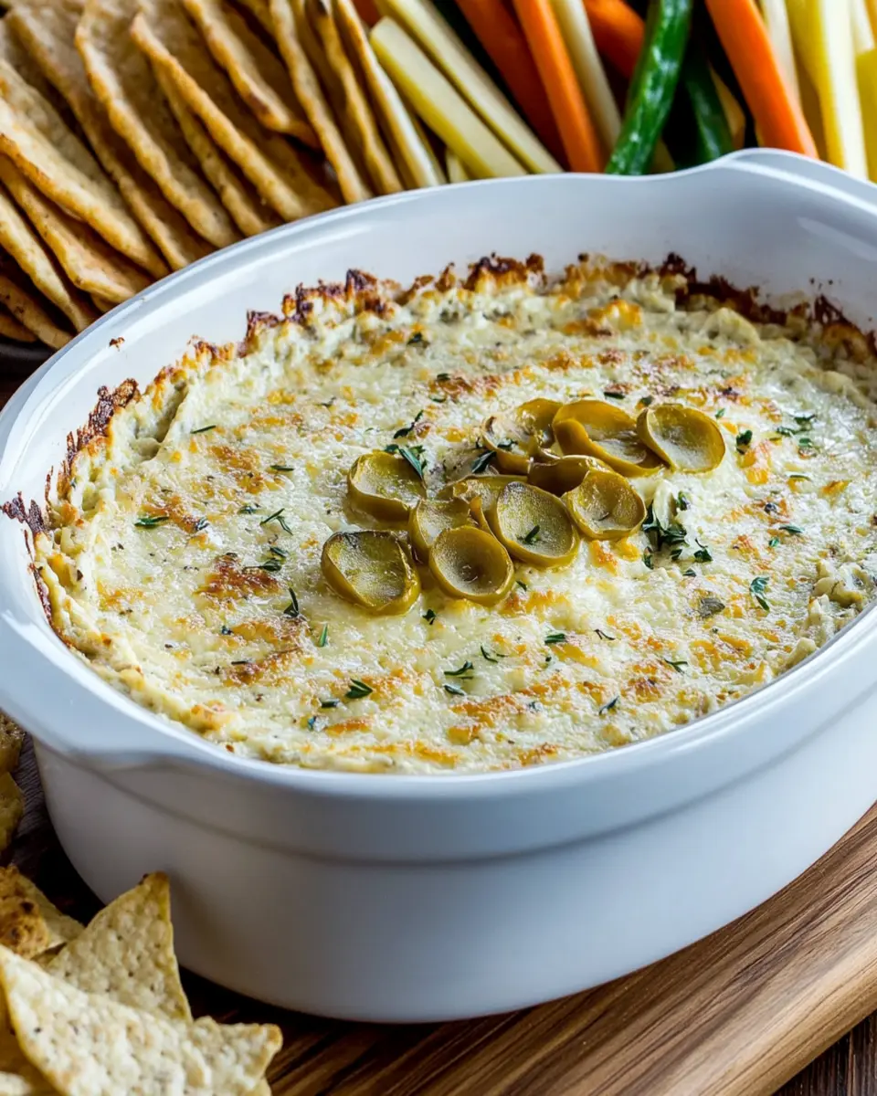 In conclusion, this Hot Artichoke Dip Recipe is not only a crowd-pleaser but also a simple and delicious addition to any gathering. Its creamy texture and cheesy flavor make it a perfect appetizer that can be prepared in advance, allowing you to enjoy more time with your guests. Whether you’re hosting a party or enjoying a cozy night in, this dip is sure to impress. Don’t hesitate to experiment with variations like adding spinach or spices to make it uniquely yours! Cook, save, and share this delightful dip, and watch it become a staple at all your gatherings.