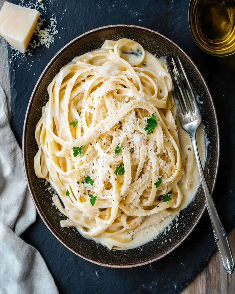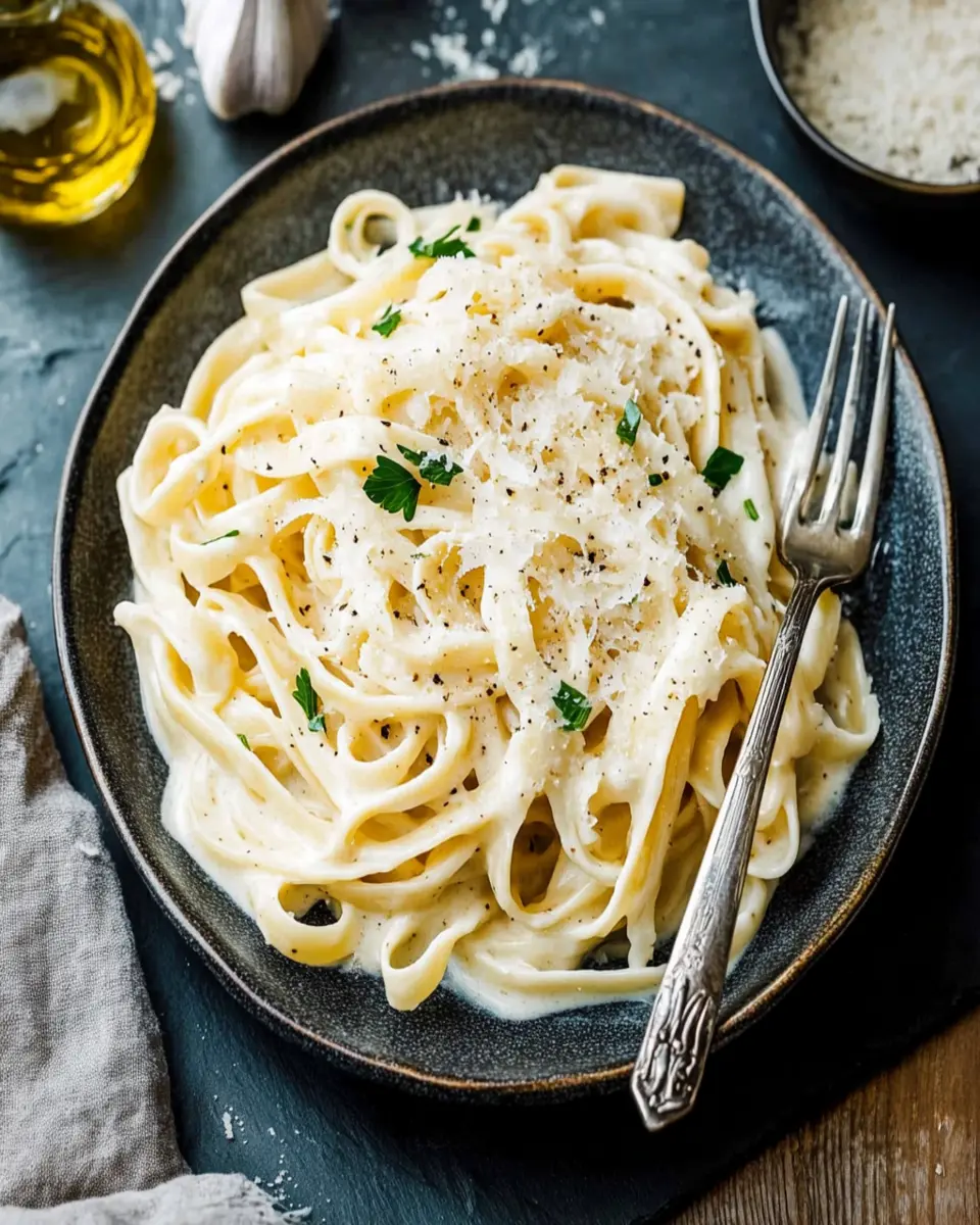 Additionally, feel free to experiment with add-ins like cooked chicken, sautéed mushrooms, or fresh veggies. These not only enhance the flavor but also make the dish more nutritious. Lastly, serve your Fettuccine Alfredo immediately for the best taste and texture, as it can thicken upon sitting. Enjoy your homemade Italian feast!