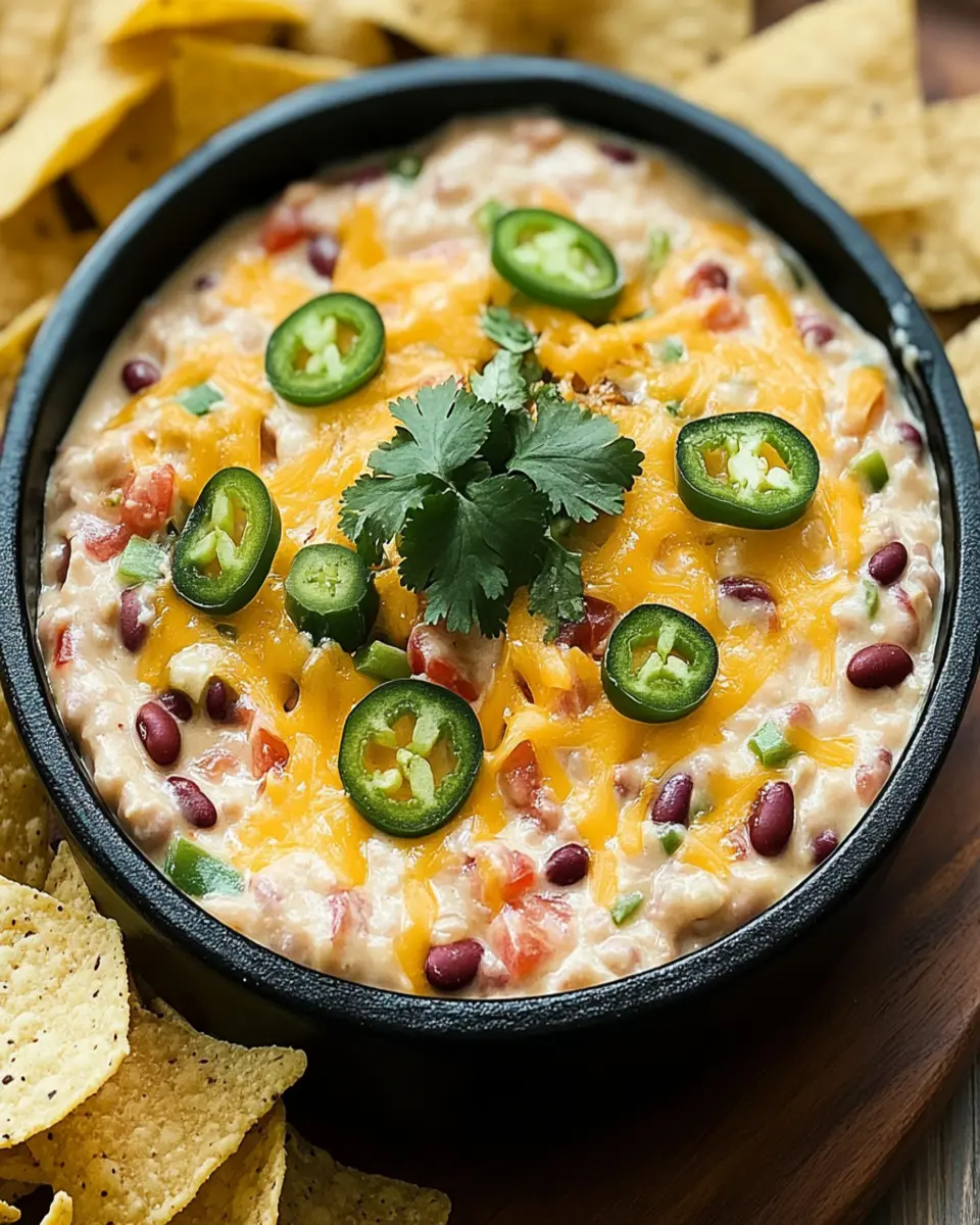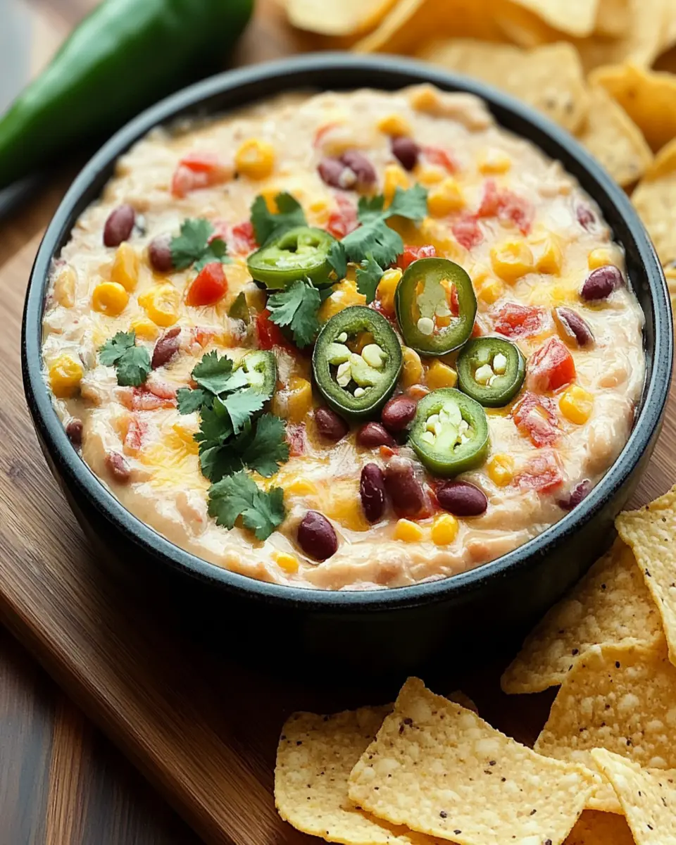 What’s more, this dip appeals to a variety of dietary preferences, being vegetarian and packed with nutritious ingredients. Whether you’re hosting a casual get-together or a festive celebration, this dip is sure to impress your guests and keep them coming back for more. So, gather your friends, grab some tortilla chips, and enjoy this creamy, cheesy delight at your next gathering!