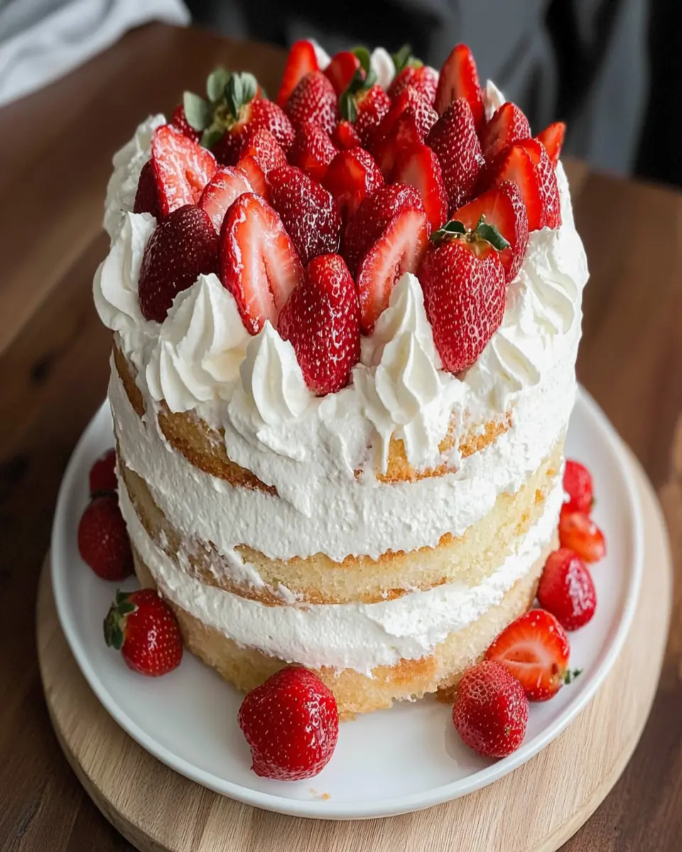 For the best flavor, always choose fresh, ripe strawberries. They should be bright red and firm, as this will enhance both the taste and presentation of your cake. Fresh heavy cream is also crucial for achieving that light and airy whipped texture that complements the cake beautifully.