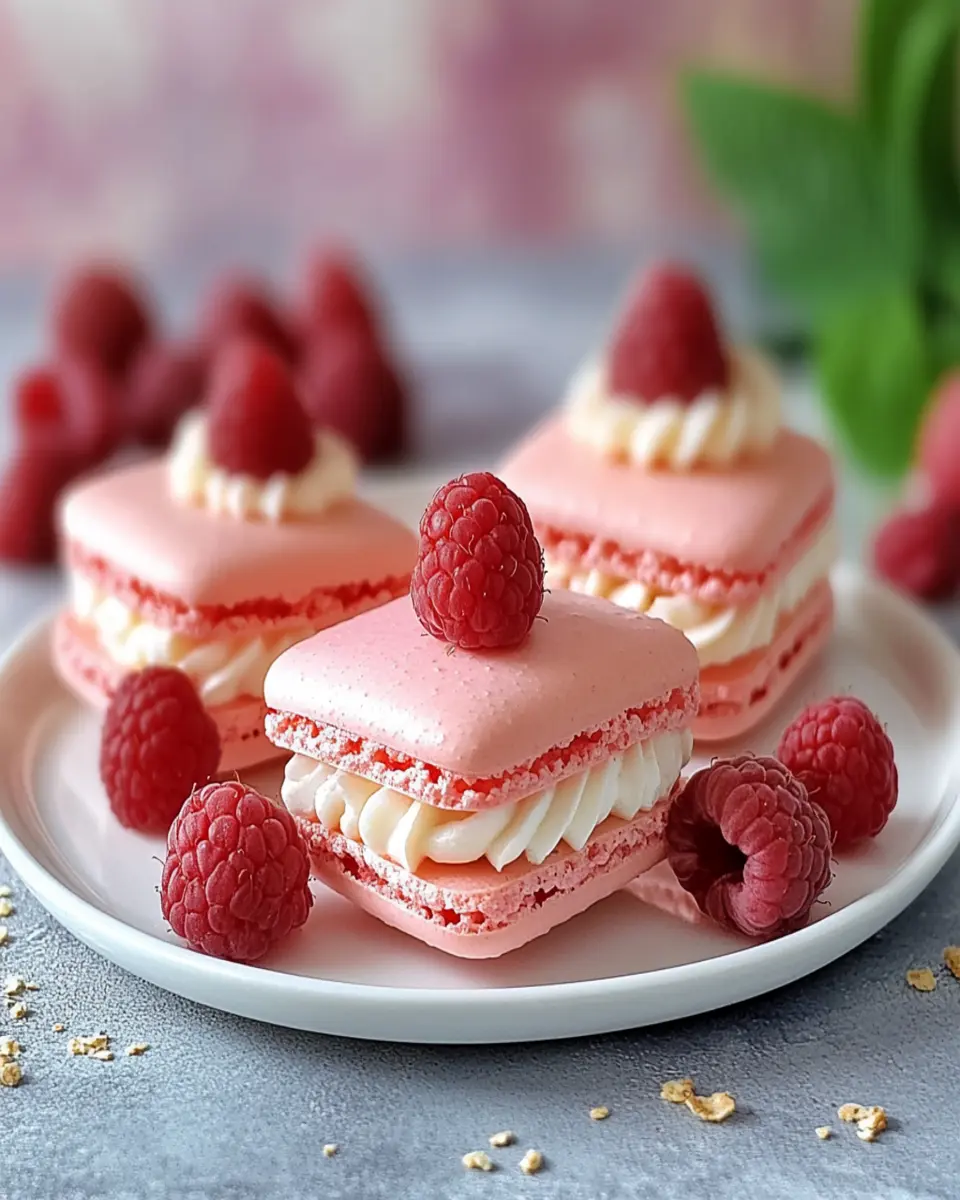 To impress your guests, consider presenting the raspberry macarons on a beautiful cake stand or a decorative platter. You can add fresh raspberries and mint leaves around them for a pop of color. For a more festive touch, dust the macarons with a little powdered sugar or edible glitter to make them sparkle, perfect for celebrations or special occasions.