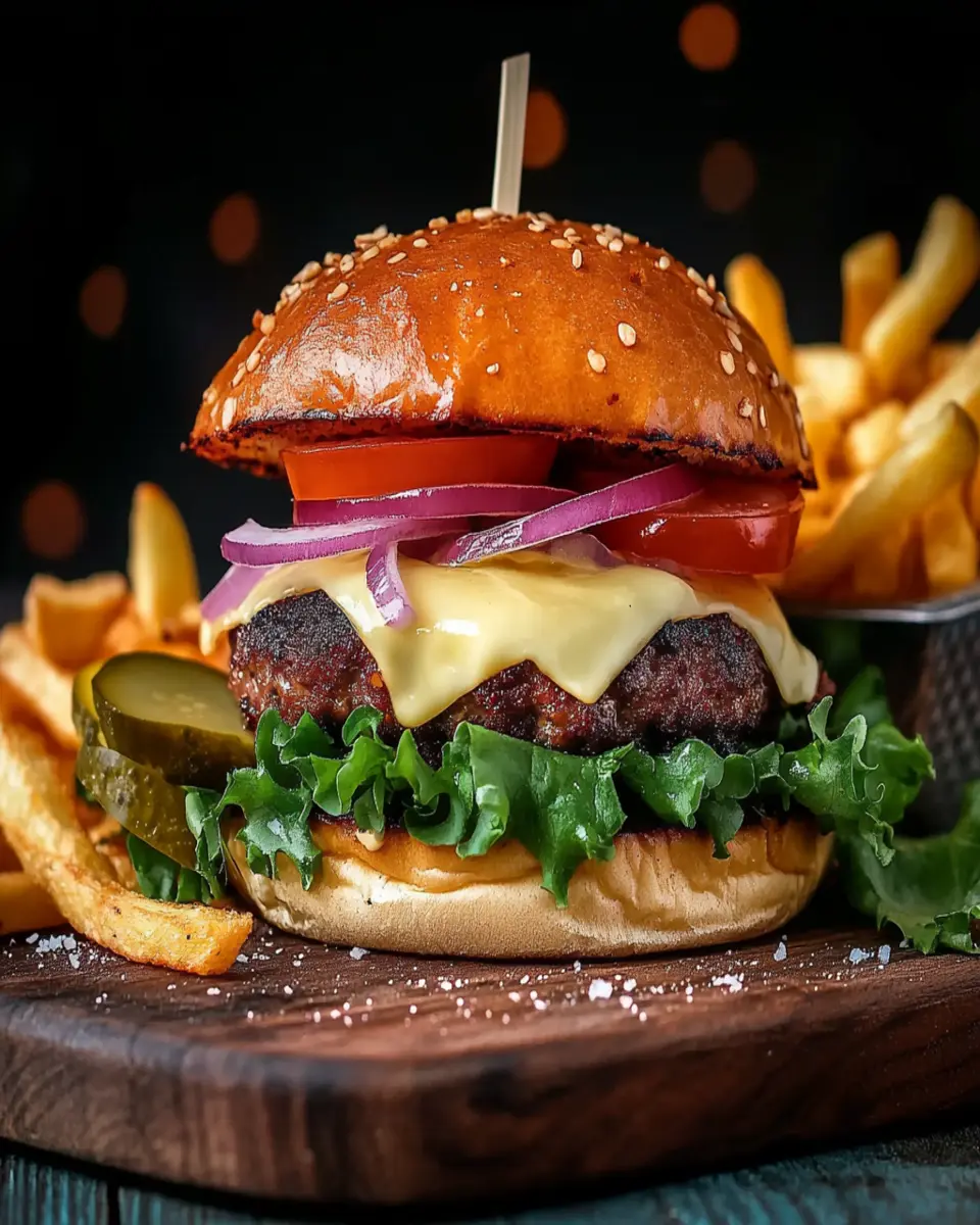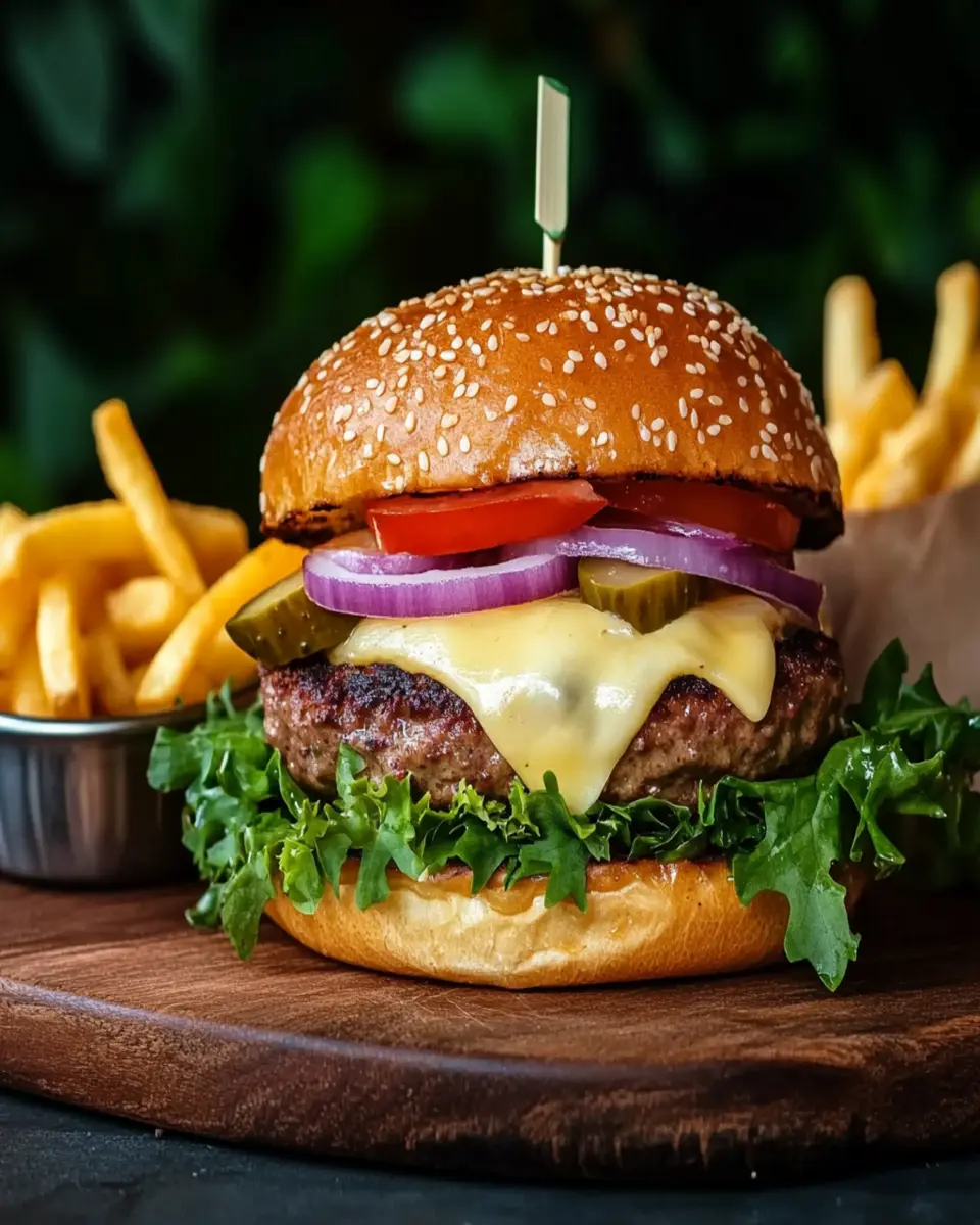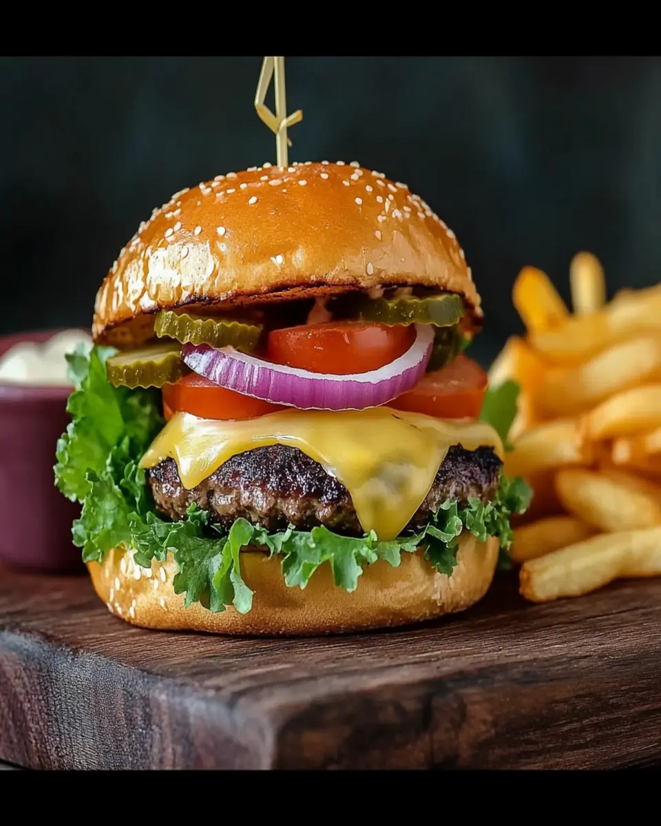 In conclusion, this Savory and Juicy Flavorful Homemade Burger Recipe in 25 Minutes is the perfect solution for busy weeknights and casual gatherings alike. With its simple ingredients and quick preparation time, you can enjoy a delicious, homemade burger that doesn’t skimp on flavor. The combination of juicy beef, melted cheddar, and fresh toppings creates a satisfying meal that will leave everyone coming back for seconds. So, gather your ingredients, fire up the grill, and treat yourself to a delightful burger experience that’s sure to impress. Don’t forget to share your creation with friends and family, and happy cooking!