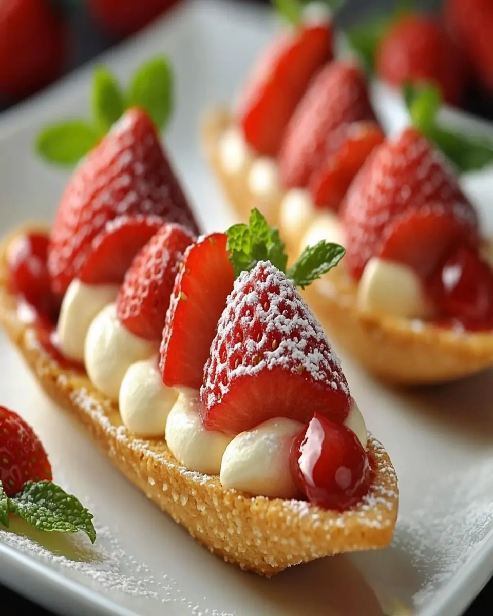 Strawberry Cookie Boats are delightful desserts that feature a soft cookie base topped with a creamy filling made from cream cheese and powdered sugar, and finished with fresh chopped strawberries. They offer a sweet and refreshing treat perfect for various occasions.